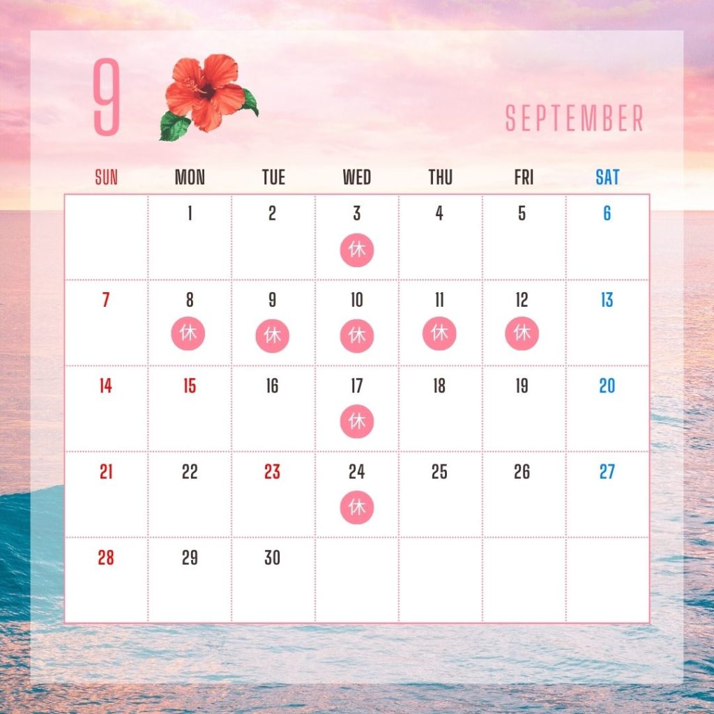 9月の定休日及び夏季休業 2025 9/01 2025年9月1日 秋の七草に心和む季節となりました。ご機嫌いかがでしょうか。 9月の定休日及び夏季休業のお知らせです。 よろしくお願いします。 2026年 2月日月火水木金土12345678910111213141516171819202122232425262728 2026年 3月日月火水木金土123456789101112131415161718192021222324252627282930311234 定休日 お知らせ 8月の定休日 10月の定休日
