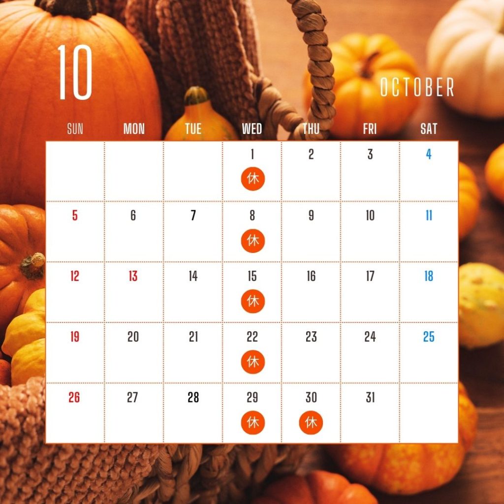 10月と定休日のご案内です。