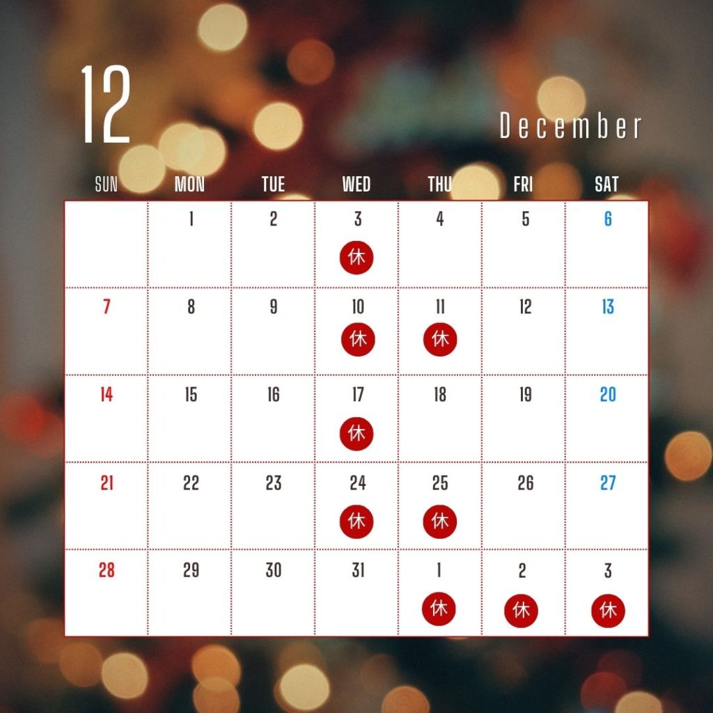 12月の定休日のご案内です。